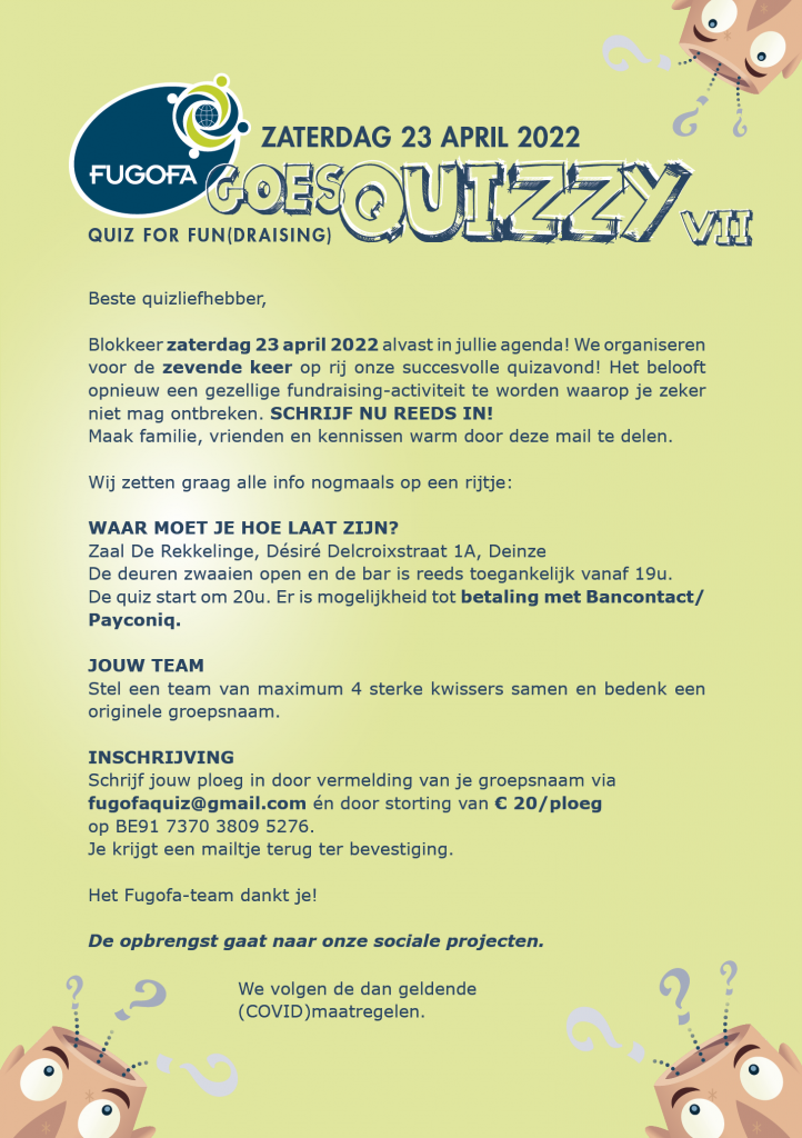We zijn blij dat onze 7de editie van de quiz mag doorgaan.